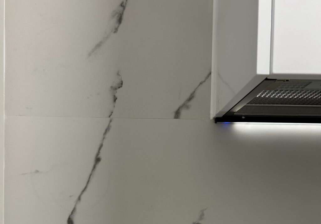 Tiras LED bajo muebles altos, ideales para iluminar la encimera.